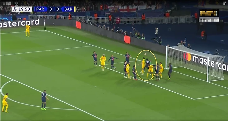 В моменте, который закончился тем, что Нуну Мендеш выбивал мяч с линии ворот, Беральдо упустил Левандовского, Кунде и Роберто перекрыли траекторию движения для Фабиана Руиса и Ли Кан Ина, а Доннарумма и Маркиньос помешали друг другу, из-за чего итальянец не успел нормально сыграть на выходе.