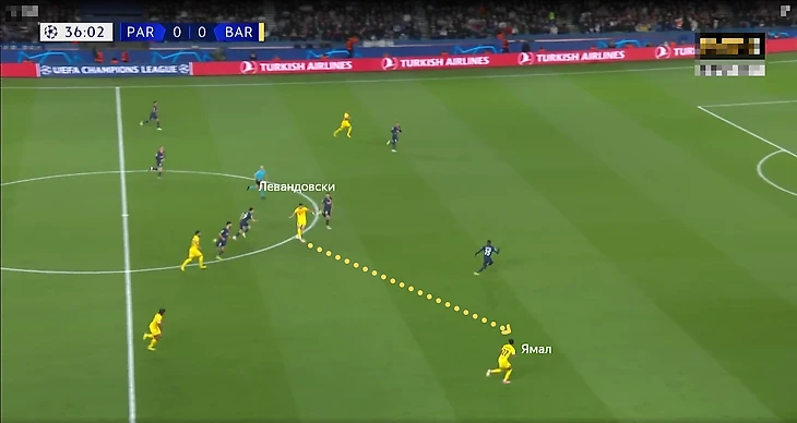 «Барселона» преодолевала прессинг «ПСЖ» за счёт длинных передач на Левандовского. Роберт выдал топовый матч