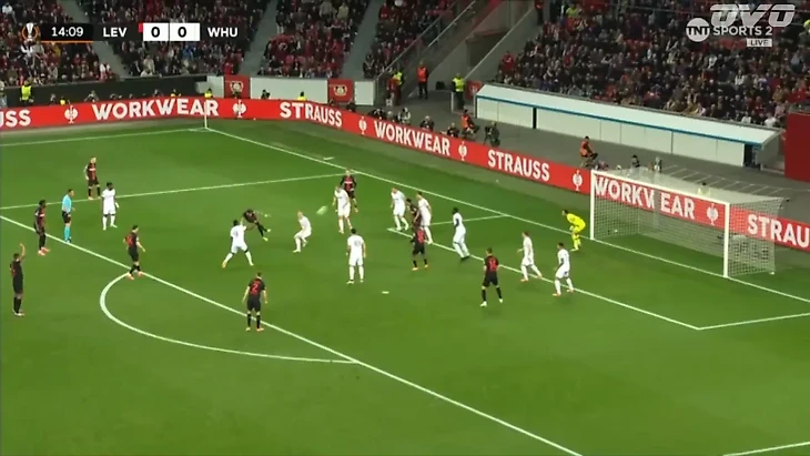 В первые 15 минут игры четвертьфинала Лиги Европы, «Байер» запер англичан в штрафной площади, устроив «бесконечную» позиционную атаку. «Молотобойцы» так перепугались, что защищались всей командой. Абсолютно. 11 человек в штрафной площади. Можете посчитать.