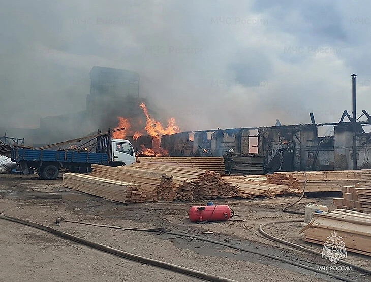 Особенность ситуации в том, что пожарная машина изначально была на матче, но уехала. Потому что в нескольких километрах от стадиона «Калуги» загорелись складские помещения пилорамы.