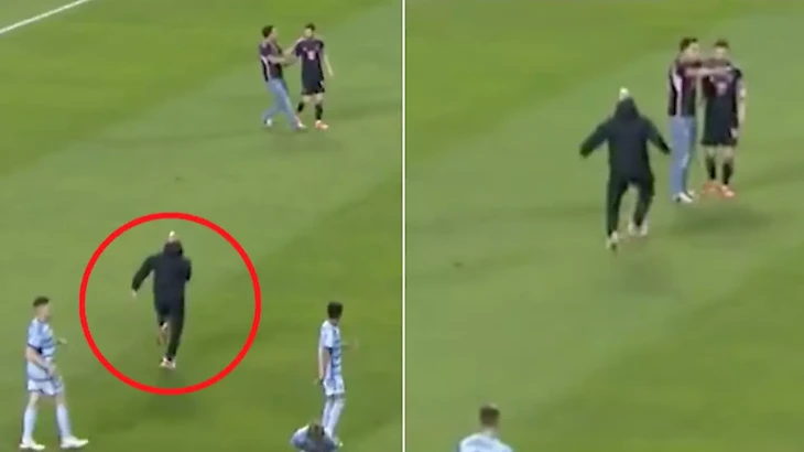 Так случилось, что во время матча против «Канзас Сити» на поле появился персональный болельщик Лионеля Месси, который хотел сделать селфи с кумиром. Аргентинец в этот момент находился на дальнем от телохранителя фланге, что ему вообще не помешало оказаться у клиента раньше, чем стюардам, которые были сильно ближе.