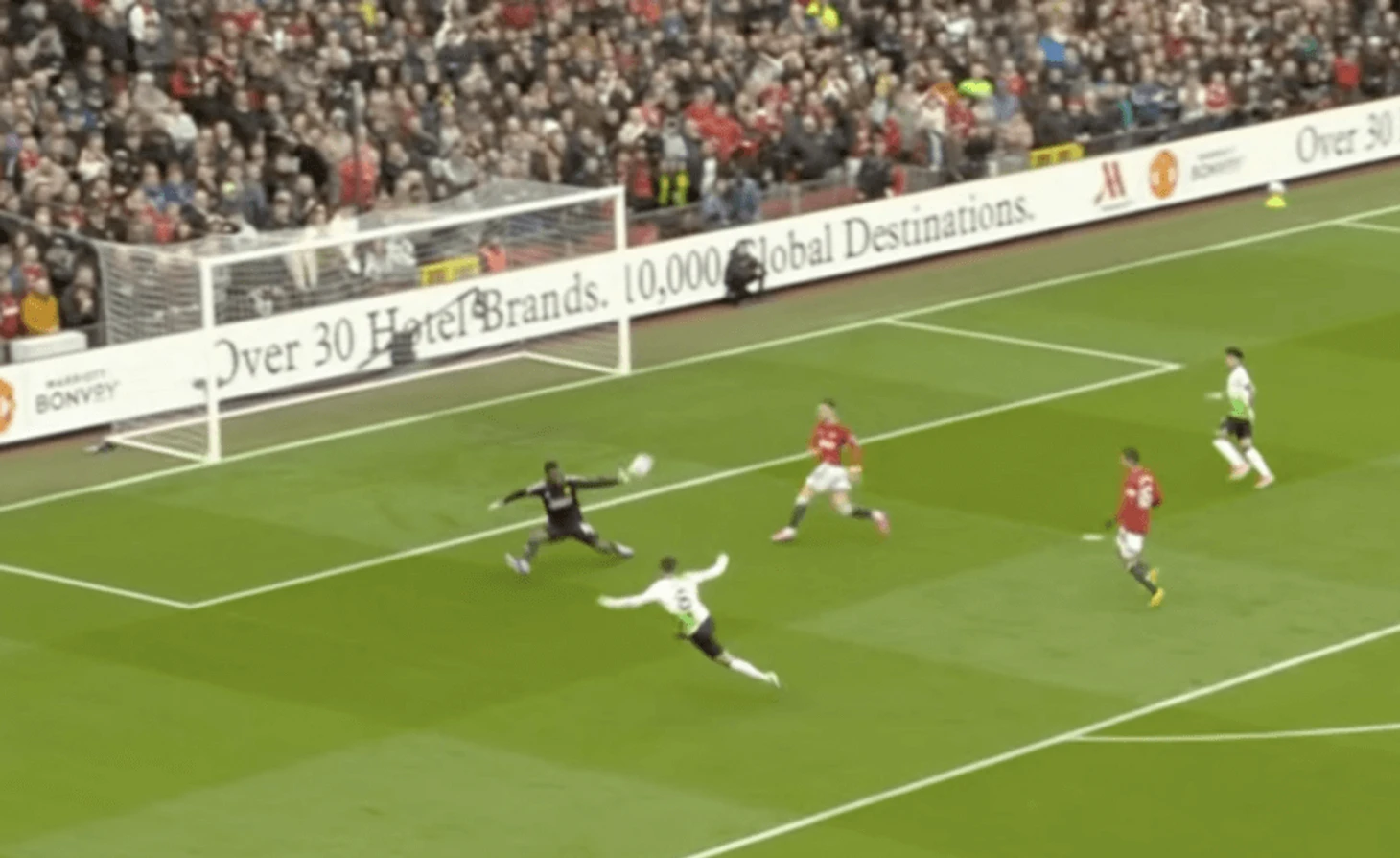 Это открывание подвело итог его нынешнему положению в жизни. «Ливерпуль» стремился сравнять счет после того, как великолепный гол Кобби Майну принес «Манчестер Юнайтед» преимущество 2:1, и удар Диаса с края поля был отбит Онаной, но в сторону Салаха.