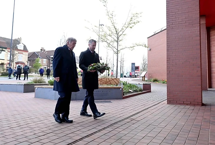 Юрген Клопп, Вирджил ван Дейк, сэр Кенни Далглиш, генеральный директор клуба Билли Хоган, послы клуба Иан Раш, Джон Барнс и Наташа Дауи, представители команд U21 и U18, а также тренер женской команды «Ливерпуля» Мэтт Берд и ее капитан Ниам Фэи возложили цветы на мемориал на «Энфилде».