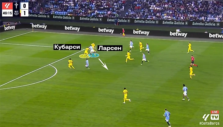 Момент с голом Яго Аспаса: не смог оттолкнуть от мяча Йоргена Ларсена, тот покатил дальше. Это пример, когда Кубарси банально не хватает физики. Придет со временем, но сейчас слабость.