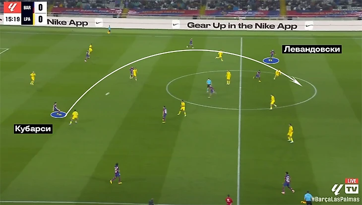 Диагональ через всех игроков «Лас-Пальмаса» – тоже просто. В той игре Пау делал акцент на подобных передачах, это был стартовый план.