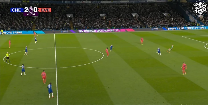Оттянутая роль Палмера помогала «Челси» и в прессинге. Коул в этом сезоне регулярно ловит защиту соперника на неудачных передачах, перехватывая мячи и создавая опасные моменты. Третий гол – именно такой. Палмер дождался, когда Джордан Пикфорд отдаст пас, и выскочил на отбор.