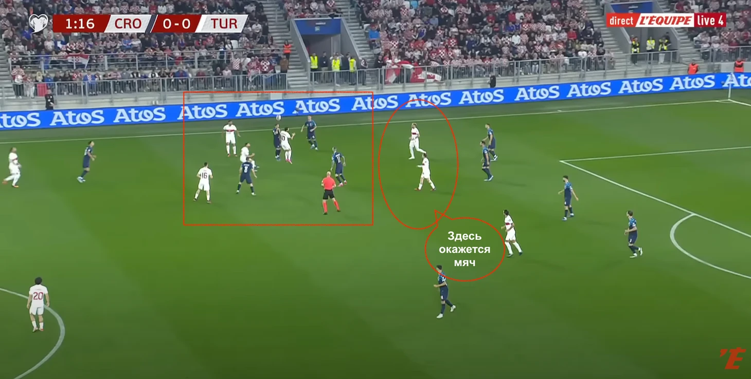 Любопытна и тактическая гибкость Хорватии, которая иногда выстраивается в линию из шести защитников. Мы это часто видели на ЧМ в матче с Бельгией и Бразилией, но вообще это регулярная практика.