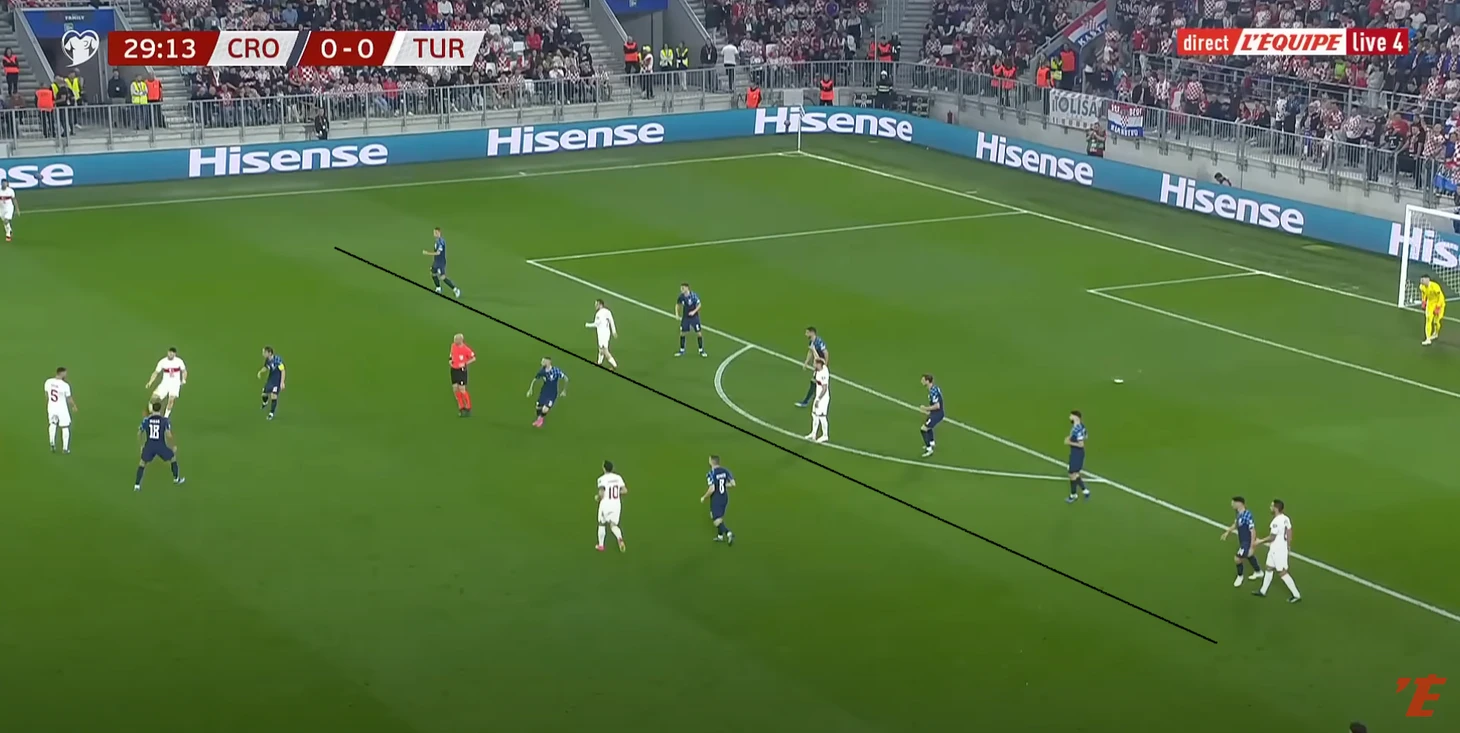 Подобная тактика вынуждает соперника рисковать и не позволяет начать затяжную позиционную атаку, которую хорваты очень не любят на себе испытывать. «Шашечным» комфортно владеть мячом, даже если под этим не предполагается обострения. Это важная особенность, которая отображает школу хорватского футбола – им трудно долго обороняться.