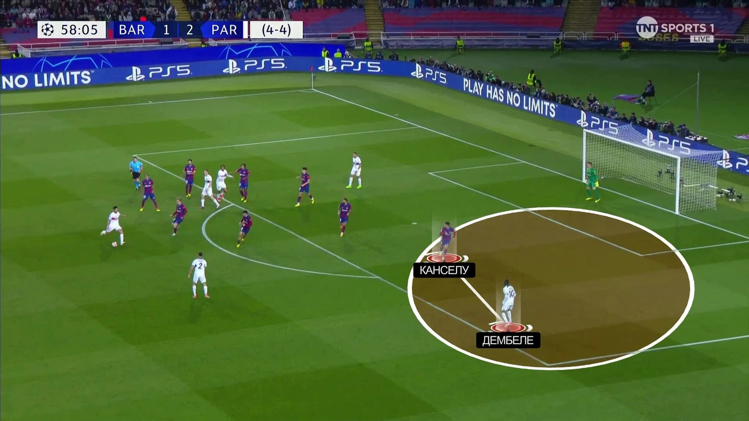 Третий мяч – пенальти Мбаппе. Он родился из изоляции Канселу против Дембеле. «Барсе» банально не хватило левого полузащитника в схеме – тогда прямой пас не проходил бы, а у Канселу была бы помощь: