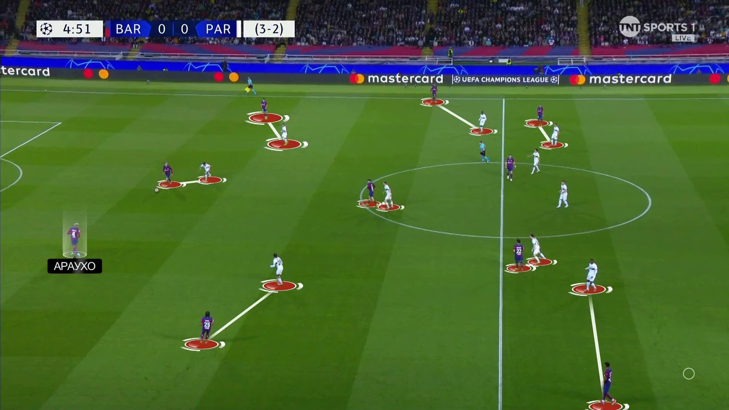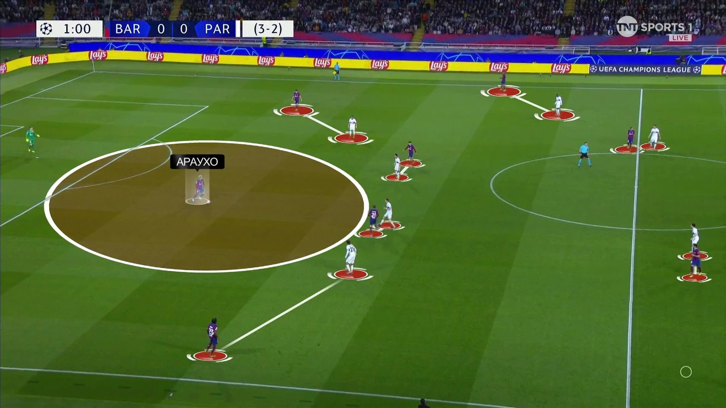 Араухо давали свободу и максимум времени на поиск решения, но все опции перекрывали. Ход Энрике давал «ПСЖ» следующие преимущества в прессинге: