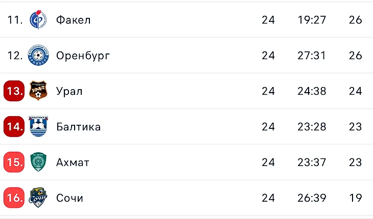 В параллельных матчах Ахмат, получивший в прошлый туре 7 голов от Балтики, сумел обыграть ЦСКА, игравший почти 75% матча вдесятером, Сочи и Урал поделили очки, а Факел, Оренбург и Пари НН, словно по заказу калининградских фанатов, очки потеряли.