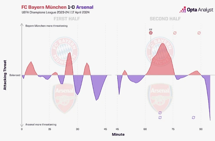 Концовку проводили на высоких скоростях. Бен Уайт схлопотал карточку на 84-й за удар по ногам Геррейру. А за пять минут до конца основного времени Артета решил выпустить более атакующего Нкетиа, вместо Томиясу. Ответом была атака «Баварии» с ударом Мусиалы. Тухель наоборот выпустил в оборону Упамекано вместо Сане.