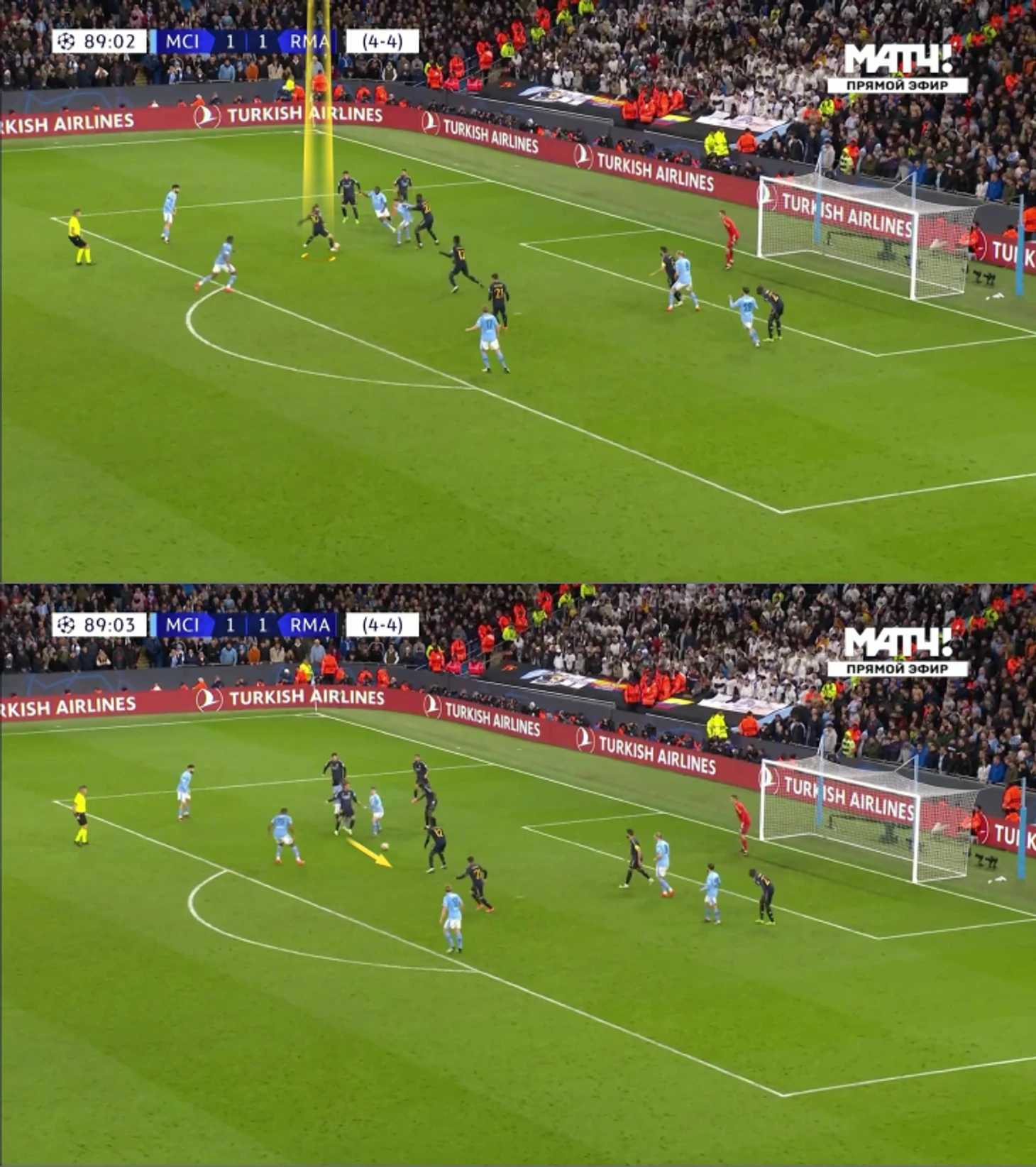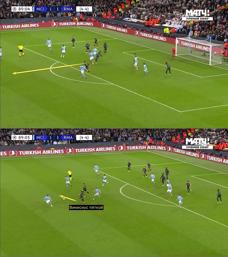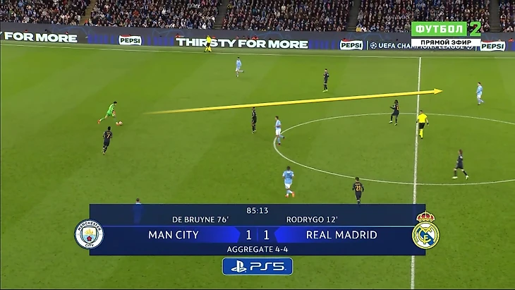 2. 86-я минута, одна из величайших серий в плей-офф, нервная концовка? Получаем удовольствие от эстетики футбола: Эдерсон нашел Фила Фодена разрезающей передачей между Феде Вальверде и Эдуардо Камавинга.