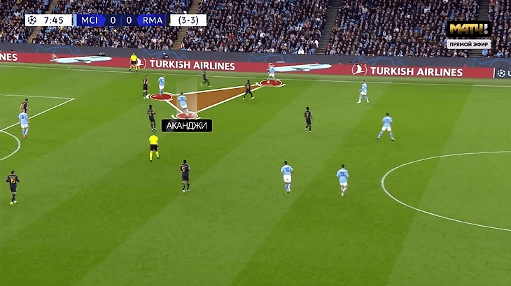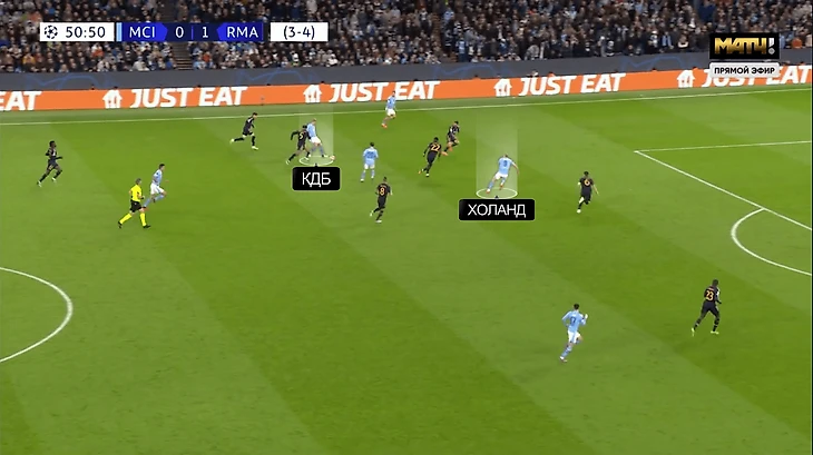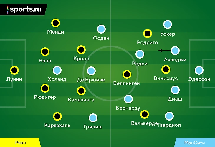 Еще по ходу первого тайма «Мадрид» приспособился к идее Пепа. В первую очередь к маневрам Аканджи и Де Брюйне привыкли игроки, отвечавшие за эту зону.