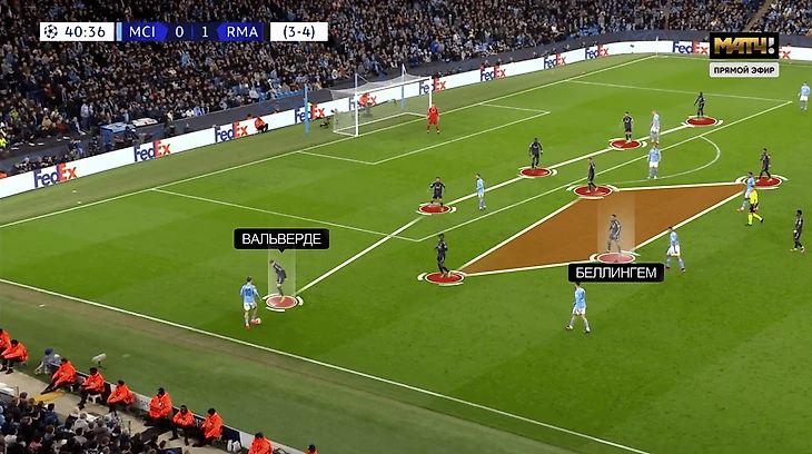 Главными компаньонами Беллингема выступили Карвахаль и Вальверде. Испанец часто подключался к атакам и стягивал внимание на себя. Уругваец смещался в середину и отвлекал Родри. Благодаря треугольнику удалось компенсировать нехватку контратак и игру через Винисиуса и Родриго.