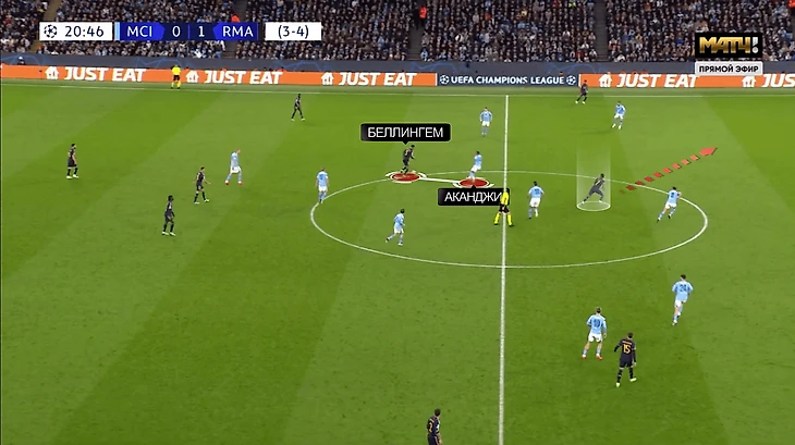 Тут на Беллингема выдернулся Аканджи. Джуд пытался наказать, но не смог исполнить: