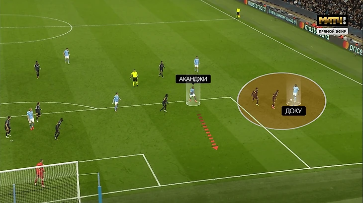 Частое явление до перерыва – появление Аканджи в правом полуфланге. Там создавал треугольник с Фоденом и Де Брюйне:
