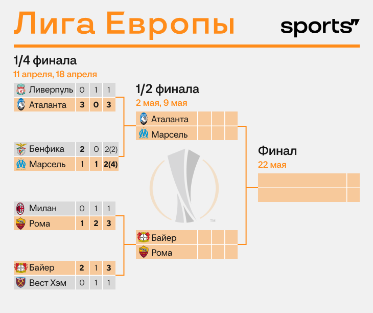 Знаем всех, кто сыграет в 1/2 финала Лиги Европы и Лиги конференций. Восемь команд – по четыре на каждый турнир.