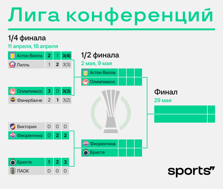 А что в ЛК? Там главный фаворит – «Астон Вилла», которая справилась с «Лиллем» в серии пенальти.