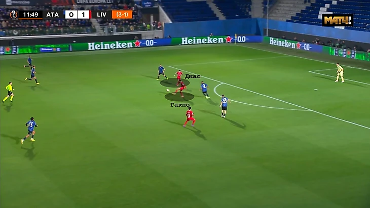 В итоге на подборе мяч выиграл Робертсон и навесил на Гакпо, который в касание перевёл мяч на Диаса, создав очень опасный момент.