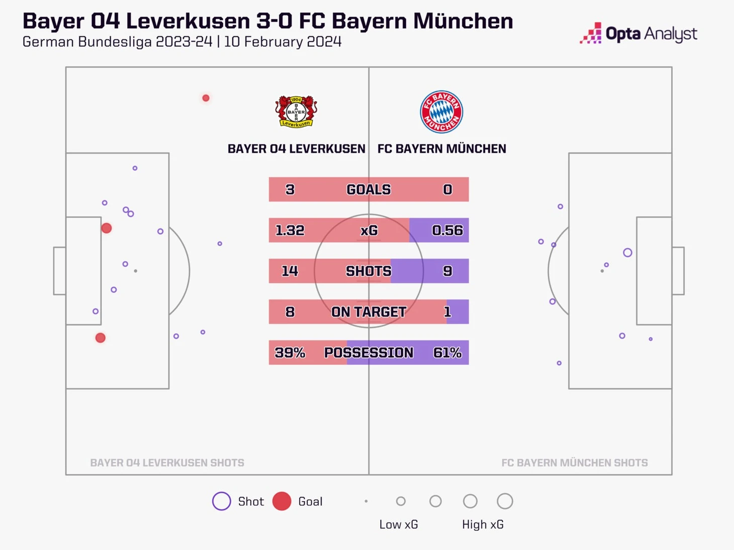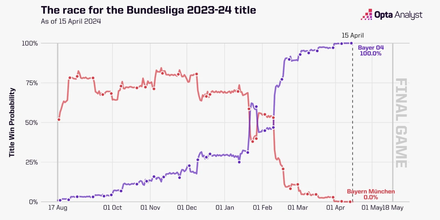 Победа в этом матче была важна не только с точки зрения психологии, но и с точки зрения цифр. По данным суперкомпьютера Opta, после победы «Байера» вероятность его чемпионства составляла 66 %. При любом другом исходе «Бавария» оставалась бы фаворитом в прогнозной модели: в случае ничьей ее шансы на титул оценивались бы в 54 %, а в случае победы - в 73 %. Мало кто также вспомнит, что в случае победы подопечные Томаса Тухеля вернулись бы на вершину турнирной таблицы.