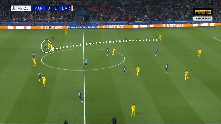 Он не позволил опорнику отобрать мяч и отвлек на себя Ли Кан Ина, поэтому Де Йонг остался свободным. Брэдли Барколя пришлось экстренно смещаться в центр за ним.