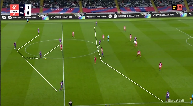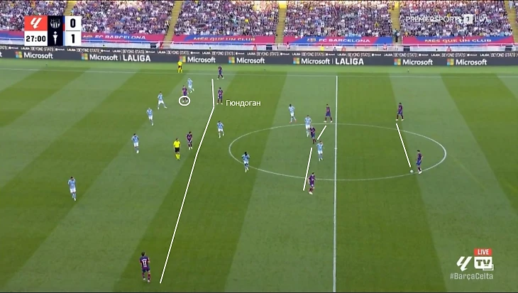 Хави было легче адаптироваться под соперников. Если нужнее рывки за спину и поиск свободы между линиями, то Илкай появлялся на позиции правого инсайда. Когда важнее контроль и своевременная смена темпа, он оказывался в центре поля.