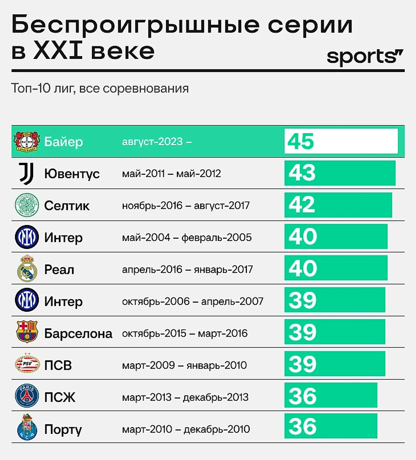 ● «Байер» – единственный немецкий клуб с такой мощной серией. Так долго не держалась даже «Бавария».