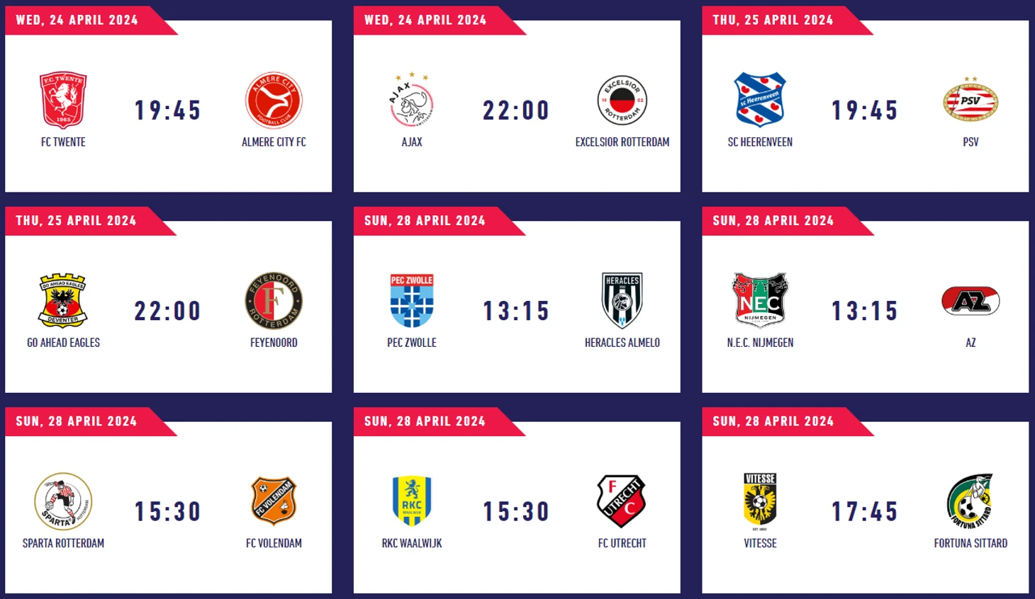 Обозреваю очередной тур чемпионата Нидерландов, самый растянутый в году - начинается в среду, а закончится в воскресенье.
