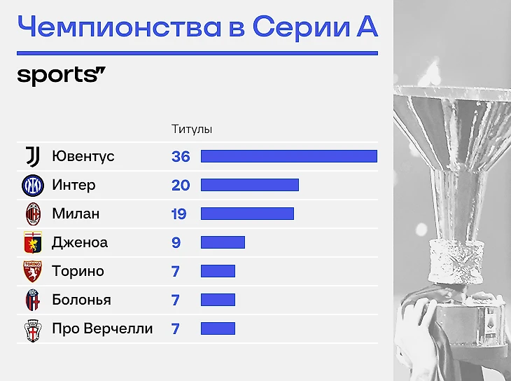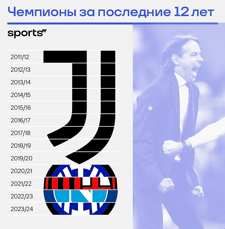 Однако с последней победы туринцев золото забирали уже три разных клуба: «Интер», «Милан» и «Наполи». Теперь снова «Интер».