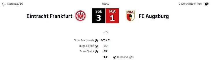 Открывали тур две команды, которые ведут прямую борьбу за место в Лиге конференций на следующий сезон. Путевку в итоге выгрыз «Франкфурт», но поначалу это было не так легко. «Аугсбург» с первых же минут создавал «Айнтрахту» проблемы, что в итоге привело к быстрому голу – на 13-й минуте отличился Рубен Варгас.