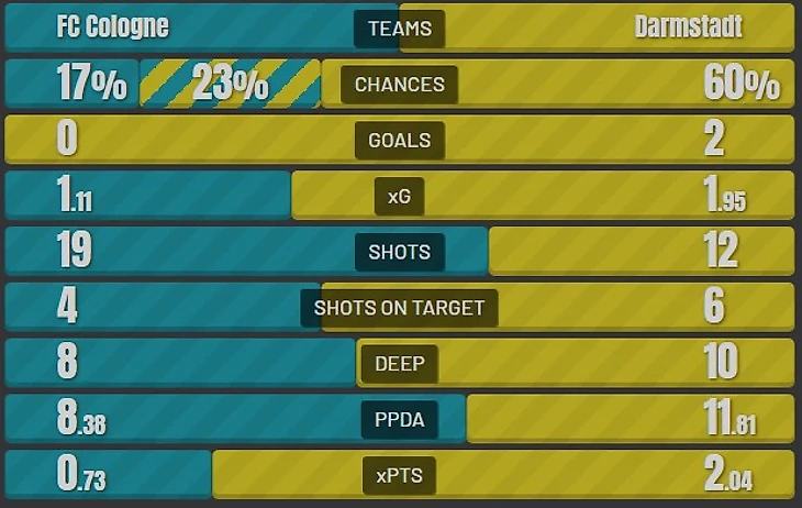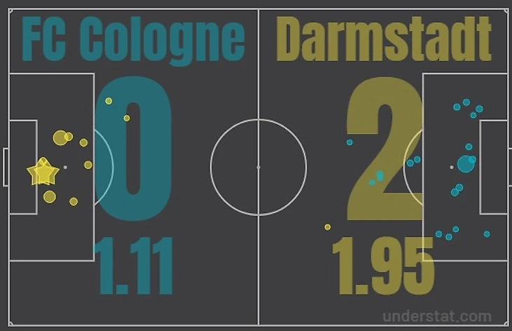 «Дармштадт» впервые в нынешнем сезоне Бундеслиги забил с углового, открыв счет в Кельне. Благодаря победе на выезде со счетом 2:0 «лилии» нанесли серьезное поражение «Кельну» в борьбе за прописку в лиге;