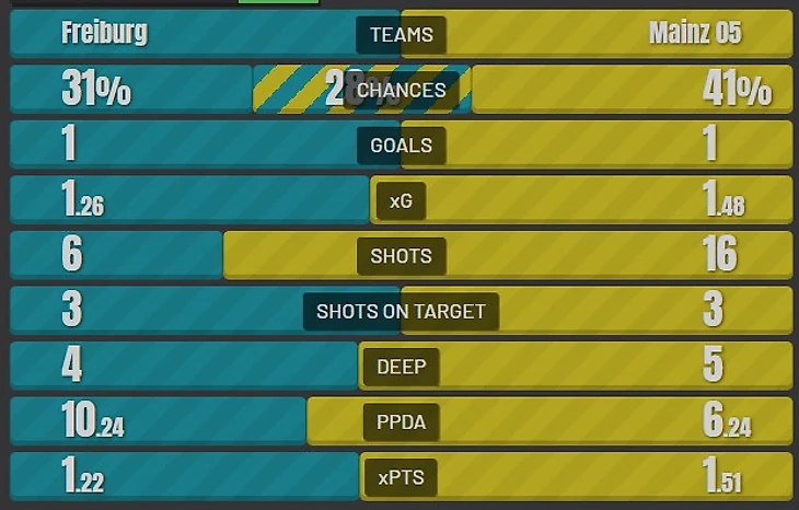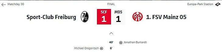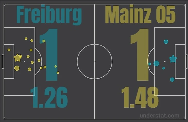 «Майнц» долго молчал и сравнял лишь перед перерывом: нападающий Йонатан Буркардт не оставил шансов голкиперу «Фрайбурга».