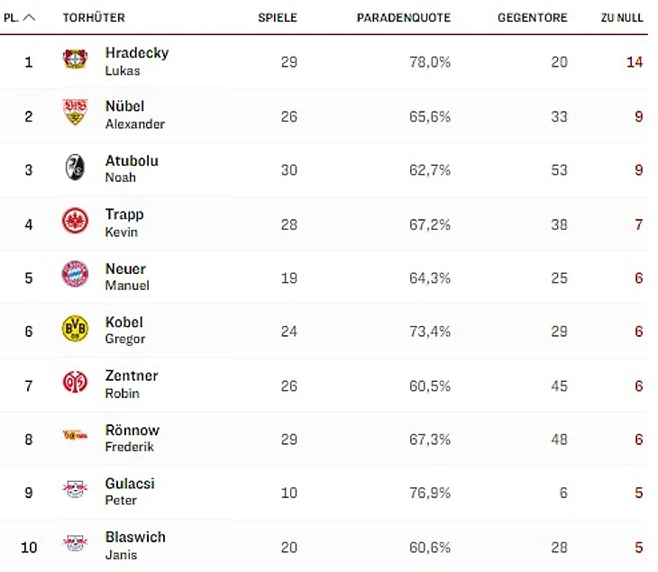 *игрок – кол-во игр – % отраженных ударов – пропущено мячей – матчи на ноль