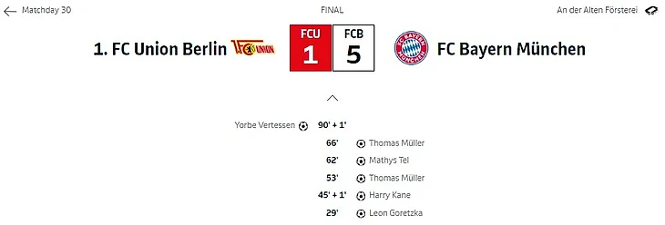 «Унион» пропустил пять голов в домашнем матче Бундеслиги лишь во второй раз. Впервые это также случилось в матче с «Баварией» – 2:5 в октябре 2021 года;