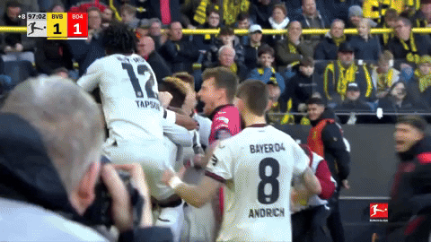 К основному времени матча добавлено 8 минут. «Леверкузен», уже ставший чемпионом, ломится в штрафную «Дортмунда», чтобы затолкать, зашвырнуть этот мяч в сетку в НИЧЕГО УЖЕ НЕ ЗНАЧАЩЕМ МАТЧЕ. И они заработали угловой, который реализовали, в самой концовке! На седьмой добавленной минуте Йосип Станишич после шикарной подачи Флориана Виртца сравнял счет, и вся команда радовалась этому так, будто уже выиграла требл...