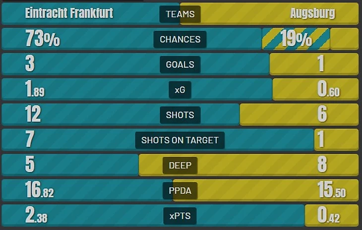 «Аугсбург» впервые проиграл во Франкфурте после того, как забил первым (было десять побед и шесть ничьих);
