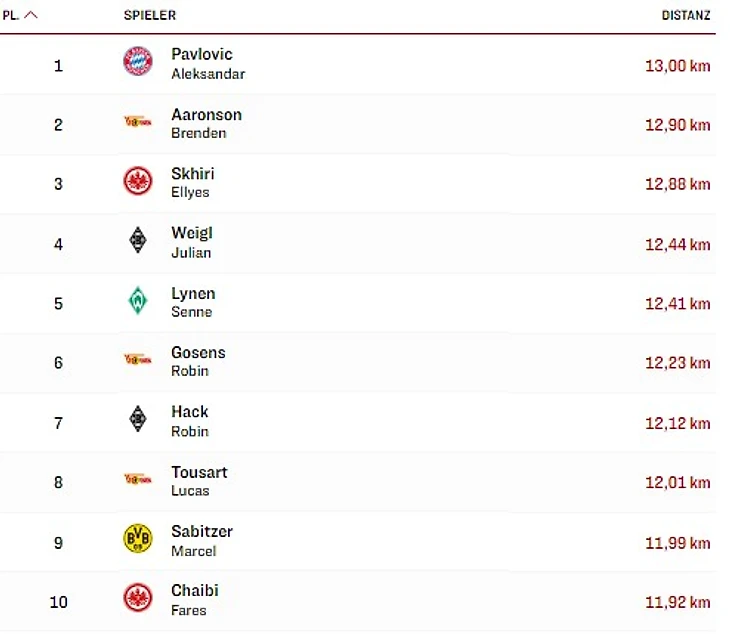 *игрок – кол-во игр – кол-во минут – в среднем км за 90 мин – всего км