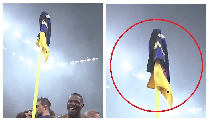 А уже после финального свистка игроки «Интера» начали празднование чемпионского титула прямо на поле, одним из главных героев действа стал автор победного гола Маркус Тюрам, нашедший интересное применение угловому флагу.