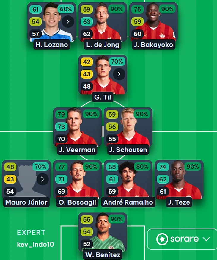 Лучшие варианты: Великий и ужасный Люк Де Йонг (нап, 8.5) продолжает разрывать Эредивизи. Его наличие даже не обсуждается. Вторым пиком мне видится Йохан Бакайоко (пз, 7.5), хотя Тезе (защ, 6.5) тоже набирает довольно много. Учтите, что Лосано под вопросом, а Дест порвал крестообразные связки.