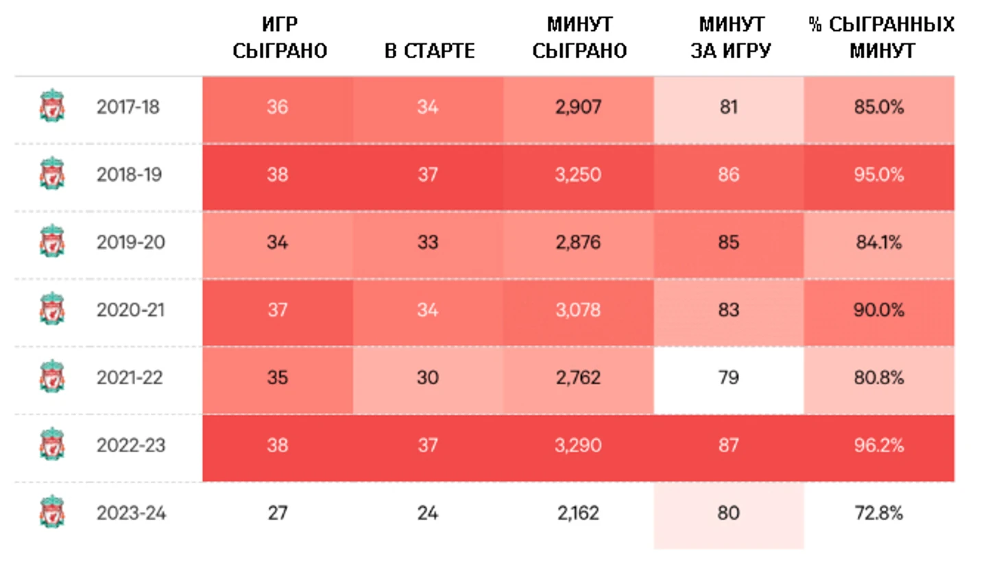 Отчасти он стал жертвой абсурдных стандартов, которые он установил для себя за первые шесть сезонов на «Энфилде». Кроме того, он выходит из длительного перерыва, связанного с травмами, что редко случается в его карьере. Его доля в 75% от общего количества сыгранных минут в этом сезоне — самая низкая с момента его перехода из «Ромы».