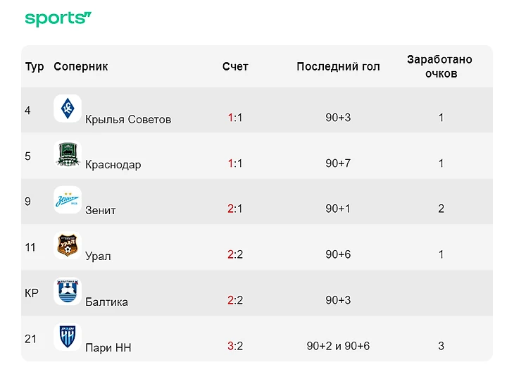 Вот как выглядят все спасения «Локомотива» на 90+ в этом сезоне.