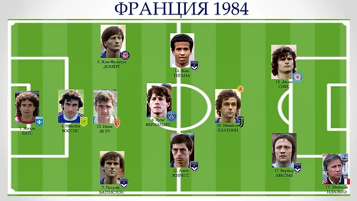 Чемпионат Европы 1984-го года стал всего лишь седьмым подобным турниром в истории, и всего лишь вторым, где состав участников был расширен до восьми команд (неловко сейчас даже думать о таком изобилии с нашими то 24-мя). И принимала его Франция, предоставившая целых семь стадионов в семи городах для выяснения споров о лучшей сборной континента. Как раз в то время в Марселе подрастал 12-летний Зинедин Зидан, вдохновляясь баталиями турнира.