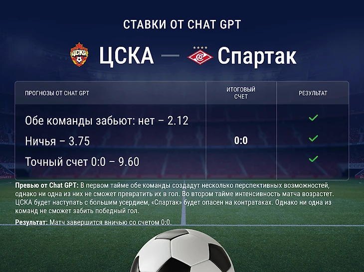 Chat GPT предсказал счет 0:0 в матче ЦСКА – «Спартак»