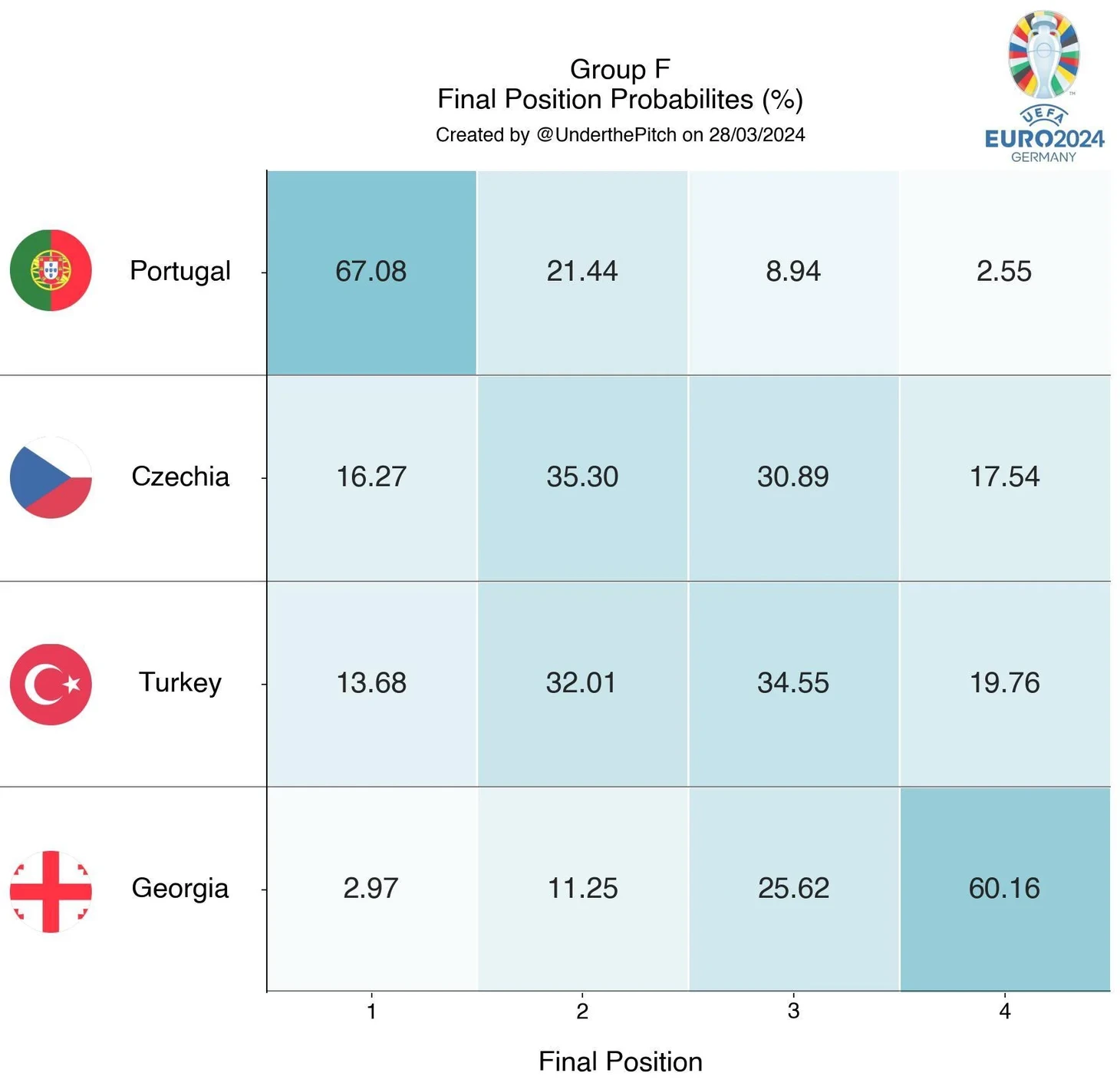 Абсолютные аутсайдеры − Грузия, Албания, Польша, Румыния и Сербия. В первые две страны бездушная машина совершенно не верит. Видимо все дело в тех группах, в которых они сыграют.