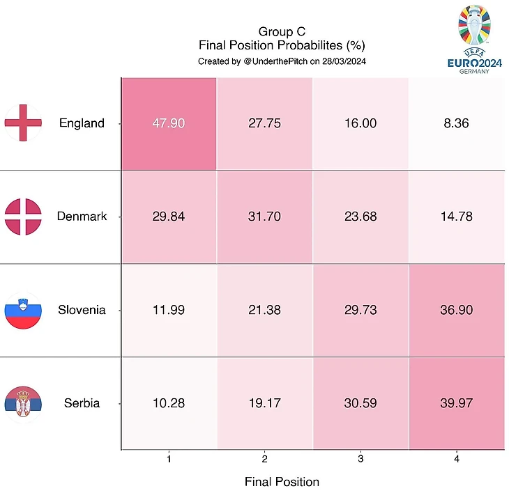 Англия − главный претендент на плей-офф из группы C, а Словения с Сербией уже могут паковать чемоданы.