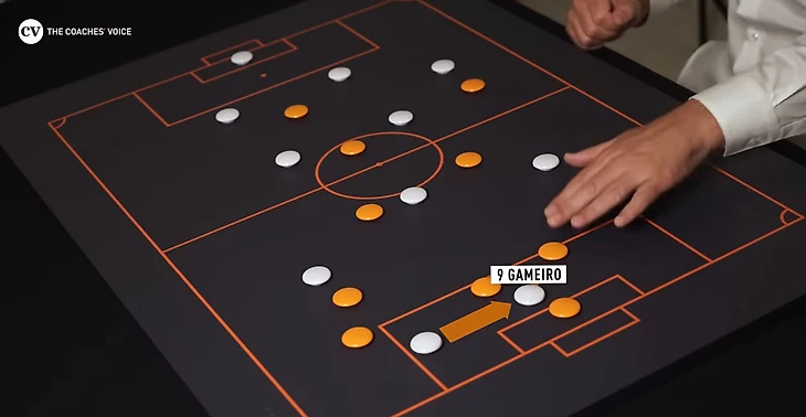 Тройка атакующих: Коке Морено в роли правого вингера, правоногий Витоло слева - это позволяло открывать коридор для Эскудеро, и Кевин Гамейро в роли страйкера.