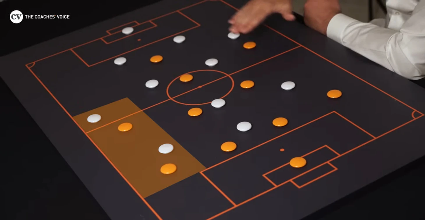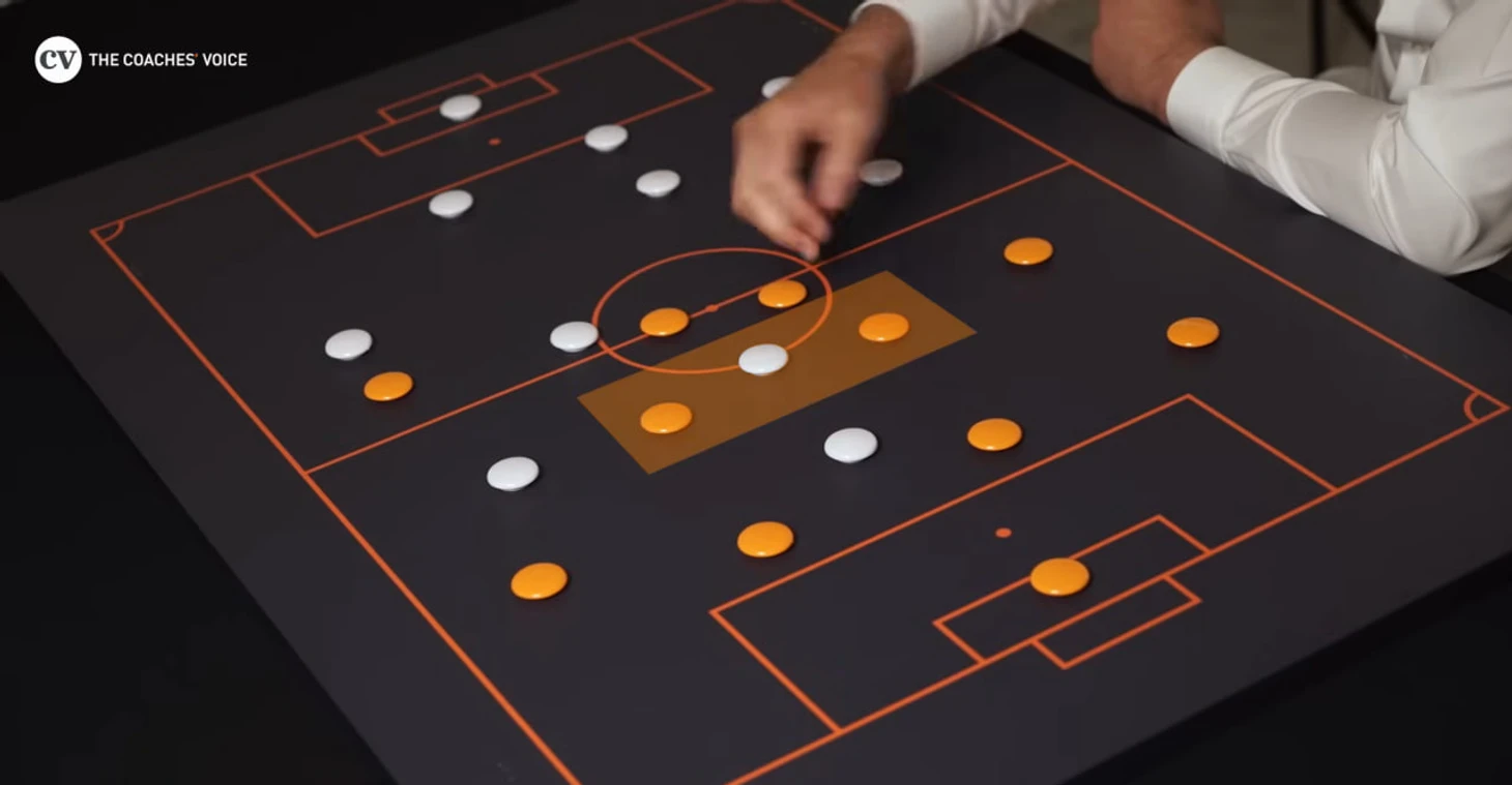 Нашей задачей было найти способ, как можно доминировать на этом участке поля, поскольку он был ключом к контролю мяча. На этом этапе важнейшая роль отводилась Банеге, который вступал связующим звеном между группами защиты и атаки. Мы старались использовать его техническую оснащенность для получения мяча между линиями полузащиты и защиты «Ливерпуля», чтобы он мог связать воедино взаимодействия не только наших вингеров и нападающего, но и крайних защитников в моменты подключения.