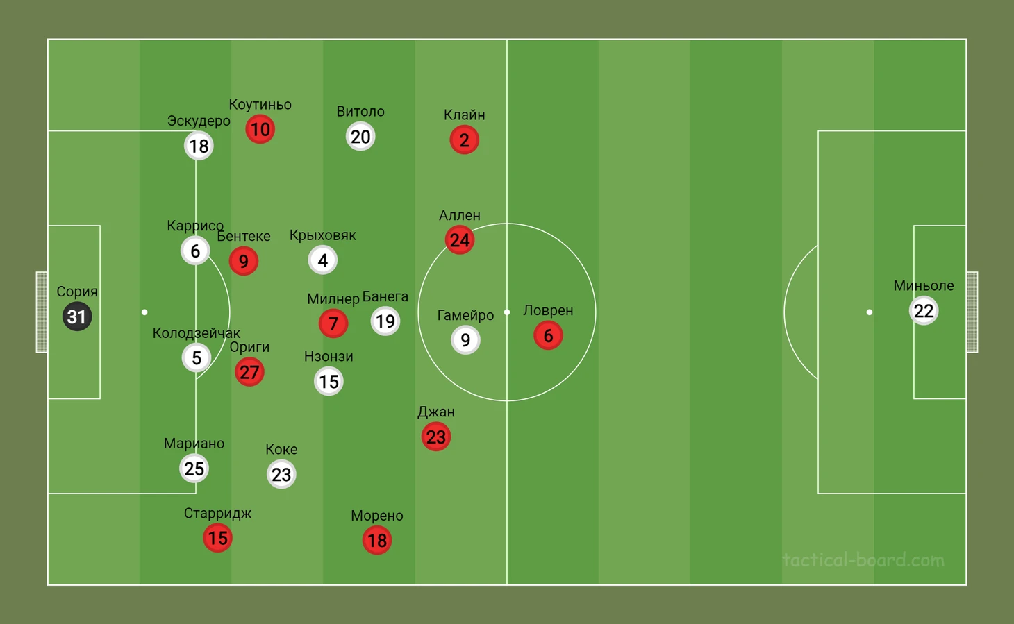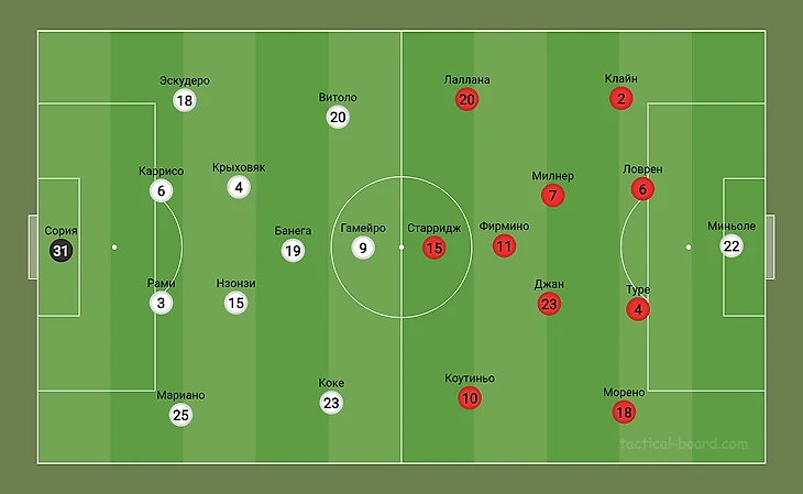 Немаловажными были и участия наших опорных полузащитников во вскрытии центра «Ливерпуля» - с помощью ротаций Крыховяка и Нзонзи мы создавали возможности для продвижения мяча в финальную треть.