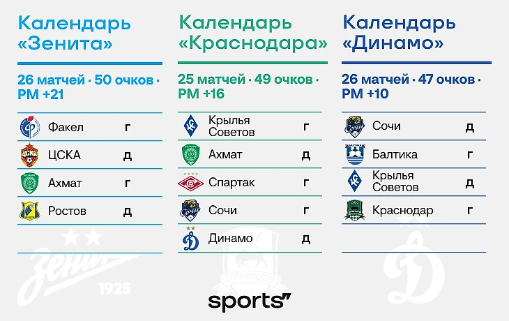 Изучаем календари: кто остался у «Зенита», «Краснодара» и «Динамо»